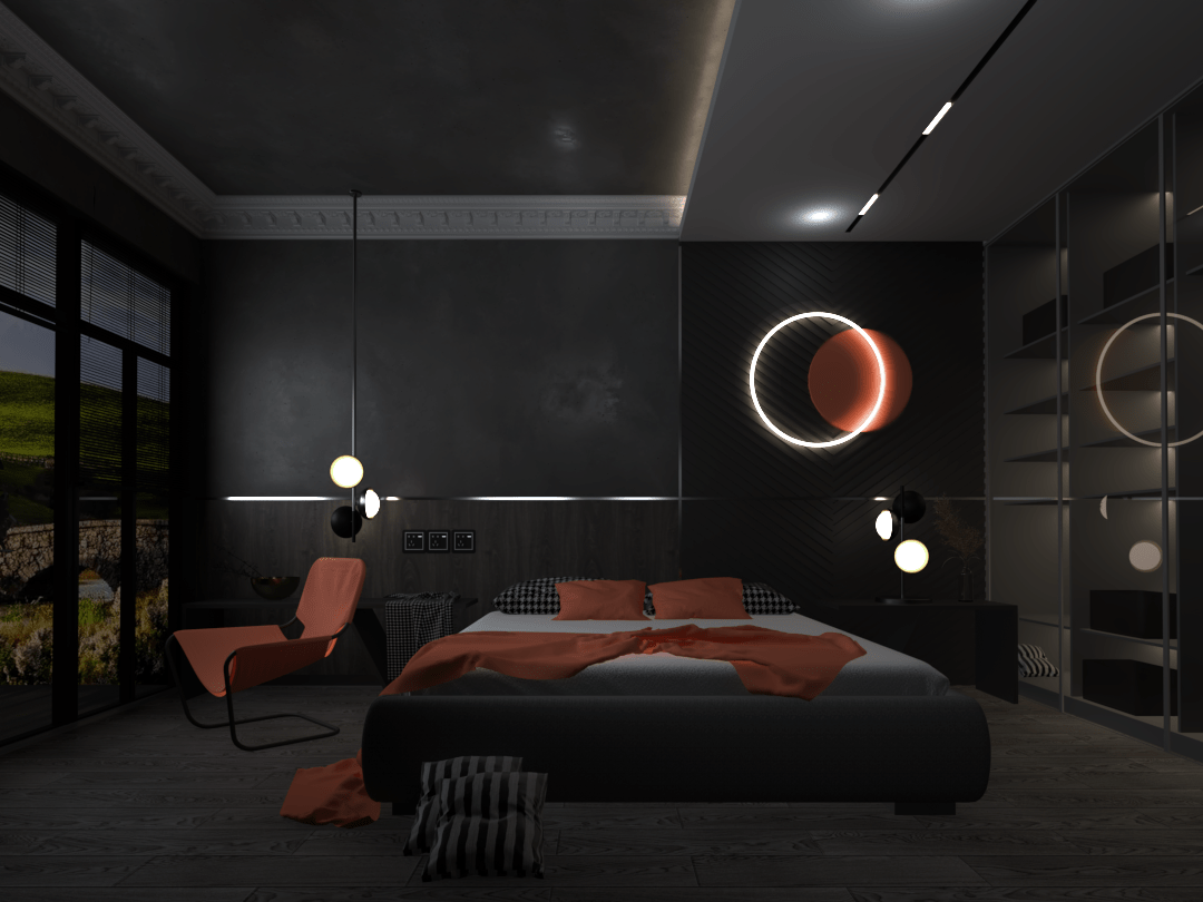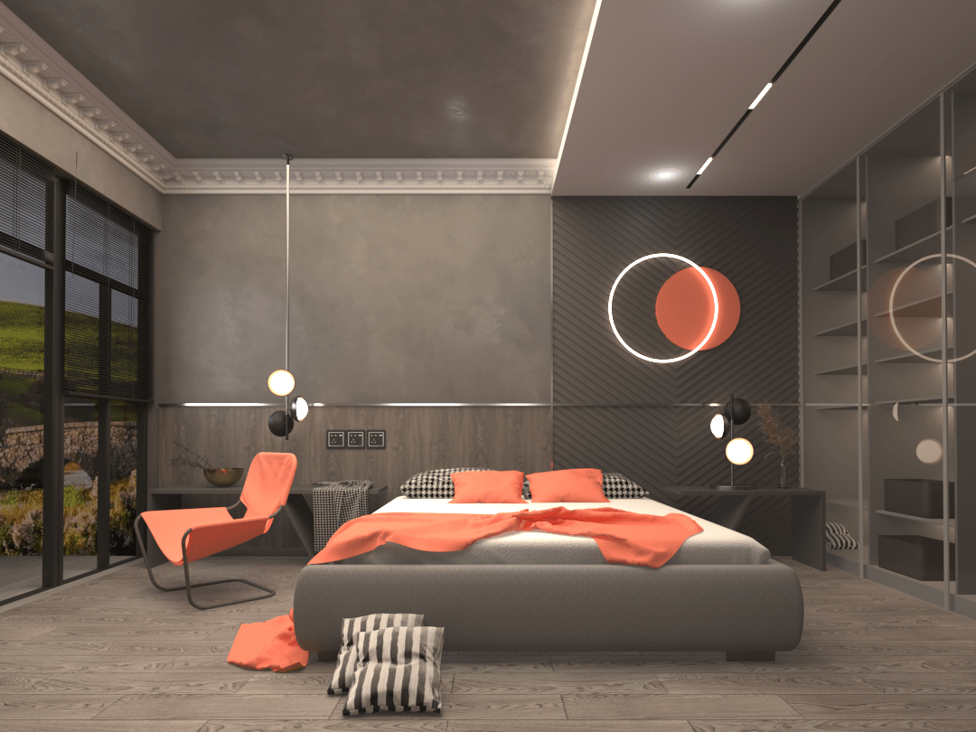 يمكن مزج مختلف الانواع لينتج بنمط مميز وفريد، كما هو موضح تم استخدام عناصر من النمط “الصناعي” من الالوان الغامقة والكرسي الجلدي والحائط الاسمنتي الشكل، وعناصر من النمط “الحديث” ويظهر في الخطوط الصريحة والاضاءات البسيطة والخطية في السقف وخزانة الملابس الزجاجية المزودة باضاءات مخفية، ثم انه تم كسر النمطين بعنصر من نمط ” الكلاسيك” الموضح في كورنيشة السقف تقليدية الشكل. هذا النوع من الديكور لا يرتبط بقوانين ولا لائحة الوان معينة.