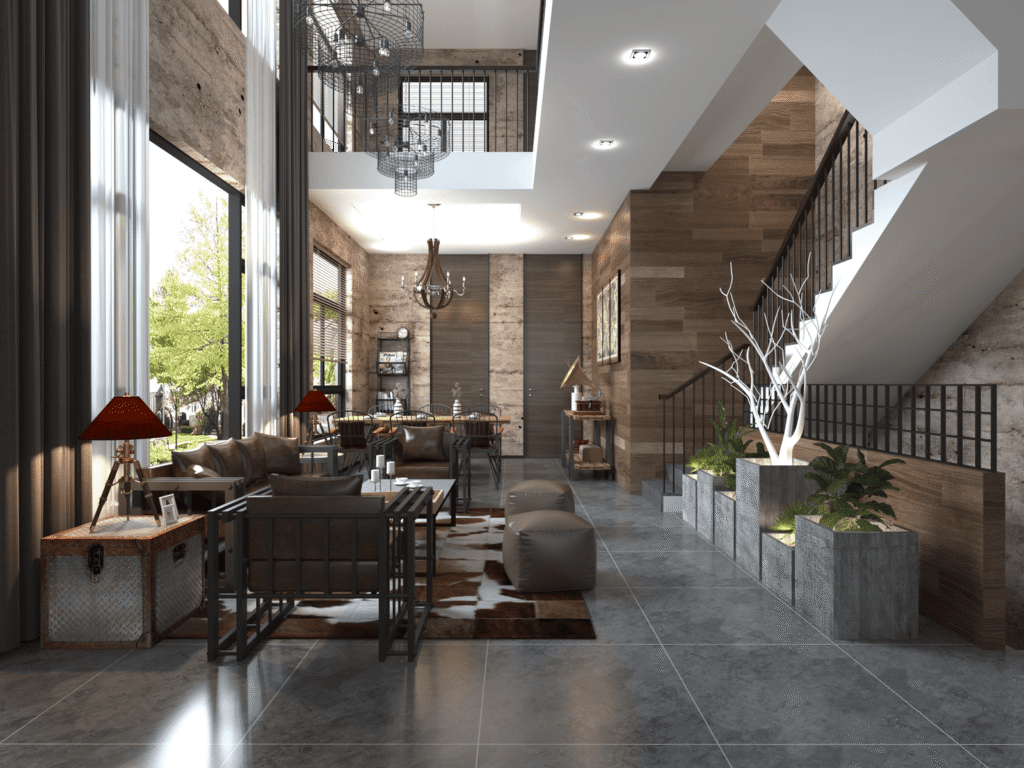 نمط الديكور “الصناعي” يستلهم من المصانع والمستودعات القديمة. يفضل استخدام لوحة ألوان محايدة مثل الرمادي والبني، لعرض المواد الخام. من خلال اعتماد الخطوط النظيفة والأشكال الهندسية، يحافظ هذا النمط على البساطة، مع تقليل الانحناءات. يُعتبر صديقًا للميزانية، حيث يستخدم غالبًا مواد غير مكتملة للحصول على مظهر صناعي أصيل. مستمدًا أصلاً من المصانع، حقق هذا النمط شهرة في المنازل لتحقيق جو حضري، وفي المساحات التجارية لخلق جو مميز وجرئ